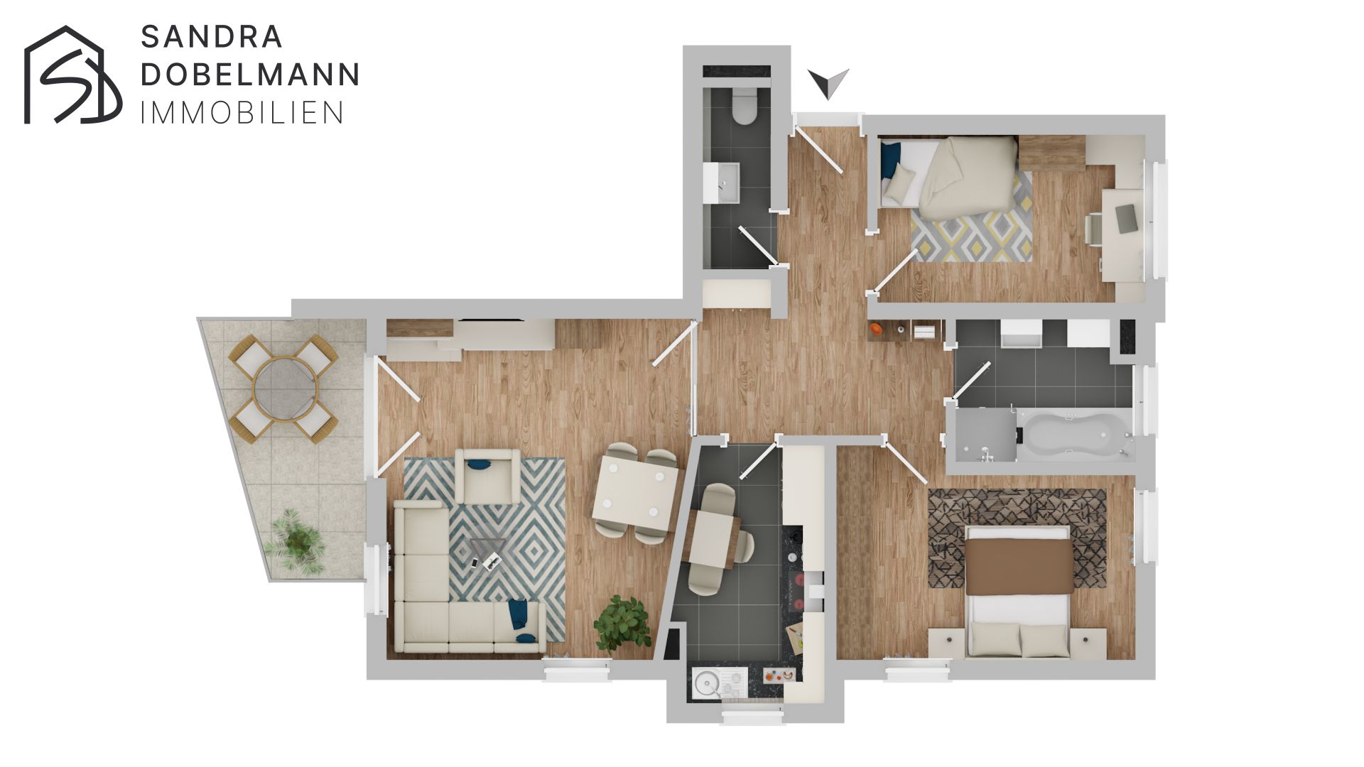 Diese lichtdurchflutetet 3-Zimmer Wohnung mit Balkon ist auf ca. 76 m² wie folgt aufgeteilt: